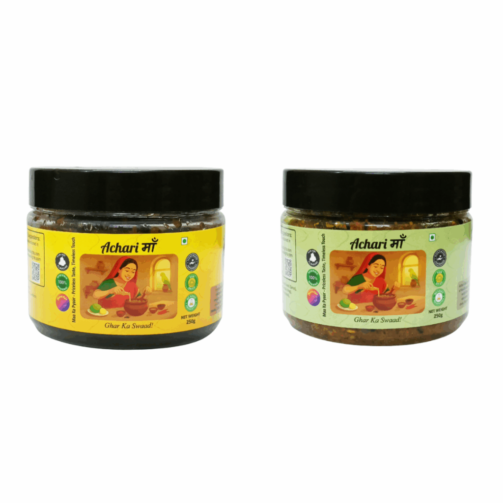 Green Chilli Pickle + Khatt Meetha Hing Mango Pickle