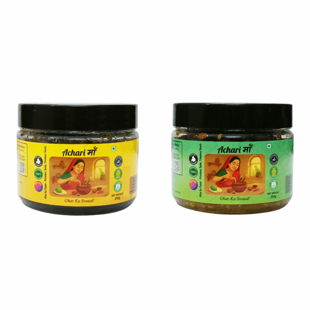 Green Chilli Pickle + Khatt Meetha Hing Mango Pickle